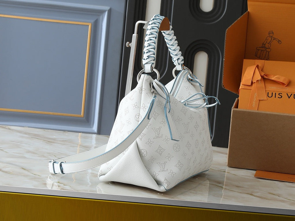 32cm long, 26cm high, and 17cm wide, featuring a white Monogram pattern on canvas treated with a special process, paired with cowhide trim. The craftsmanship is exquisite, and all leather comes from tanneries certified by the Leather Working Group, combining beauty and durability.