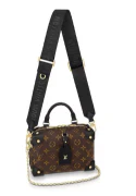 Opening and Closure: A zipper closure allows for quick access to contents while ensuring security. Appearance: The bag features a compact, retro, and stylish design, with a square, sleek silhouette. Strap: Equipped with a handle for easy carrying and a detachable, adjustable shoulder strap made of a combination of leather and chain, it can be worn over the shoulder or crossbody, adapting to various styling and usage scenarios. Decorative Details: The bag features aLou*is Vuit*on logo tag, further highlighting the brand's identity.