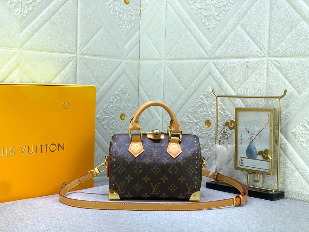 Size: 20x14. Made of classic brown Monogram canvas, the bag has a rounded and practical shape, with leather trim and metal hardware. It has a classic and versatile style, is highly recognizable, and is one of the brand's iconic collections.