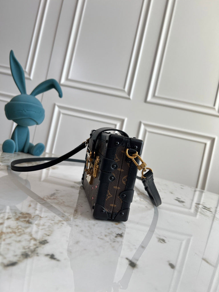 Opening/Closing: The flap features a signature gold buckle closure, ensuring secure contents while also being decorative and paying homage to the brand's classic hardcase design. Strap: A detachable and adjustable leather strap allows for hand-carrying, shoulder-carrying, or crossbody wear, accommodating a variety of styling options. Appearance: The overall design retains the boxy silhouette of a hardcase, but with a softer, more refined silhouette, blending vintage and modern elements. Suitable for various occasions,The Petite Malle Souple handbag is suitable for a variety of occasions. It can be paired with casual attire for a stylish and individual look on a daily basis, while it can also be paired with formal attire for business events, dinners, and other formal occasions, showcasing elegance and sophistication. It is one of Lou*is Vuit*on most popular bags.