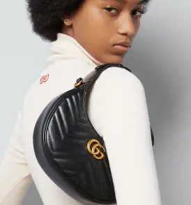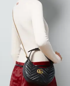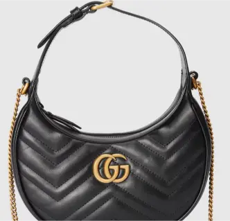 Size:21.5x11x5cm,The front of the bag features the vintage gold Double G logo, a signature element of the GG brand. Specially treated for exceptional gloss and texture, it highlights the brand's distinctive and luxurious character. Its unique crescent-shaped design, with its smooth and soft lines, creates a chic and elegant silhouette that stands out from the crowd, creating a retro yet stylish aesthetic. The bag's surface is finished with diamond-patterned quilting, adding a sense of depth and depth while enhancing the bag's texture. Each quilted stitch is meticulously detailed and evenly applied, showcasing the exquisite craftsmanship.