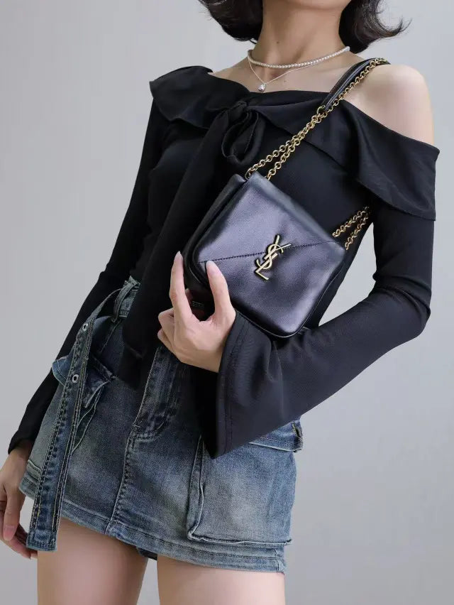 Dimensions: 16x11x4cm,The Jamie collection's design inspiration blends the classic elegance of the Y*L brand with modern fashion elements. This mini chain bag, inspired by retro styling, incorporates the current trend for compact, refined bags. Designed to meet consumers' demand for both aesthetically pleasing and practical fashion accessories, it serves as a finishing touch for everyday outfits or a statement piece for special occasions. Its classic rectangular shape features clean, sleek lines and harmonious proportions. It's perfectly sized for everyday essentials like a phone, wallet, and lipstick. The flap closure, with either a snap or magnetic closure (depending on the model), ensures convenient and secure use.
