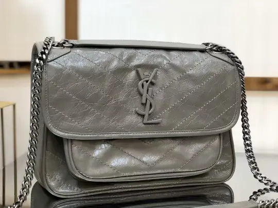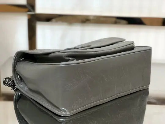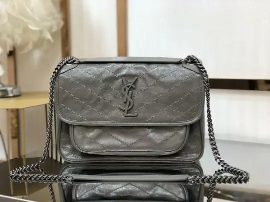 This small Niki bag in waxed leather (black chain) showcases a perfect fusion of retro and modern through its unique quilting and waxed leather material. Designed to satisfy consumers' pursuit of fashion and individuality, it's suitable for a variety of occasions. The classic flap shape is perfectly sized to carry daily necessities such as a phone, wallet, and lipstick. The bag's sleek lines and retro diamond-pattern quilting add a three-dimensional and stylish look. The Y*L metal logo becomes a visual focal point, complementing the black waxed leather and enhancing the bag's recognition. The chain and leather shoulder strap is strategically designed to ensure both aesthetics and comfort, and the adjustable length accommodates diverse carrying needs.