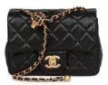 Pearl Crush Mini Square Flap Bag Black Lambskin Antique Gold Hardware