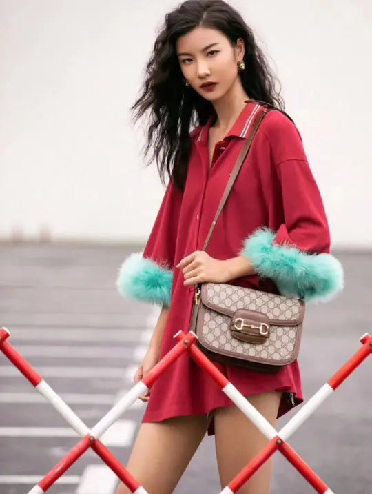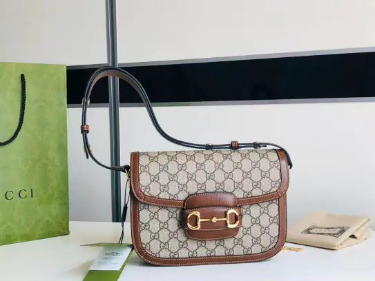Dimensions: 25x18x8cm. The Horsebit 1955 collection is inspired by the classic handbag style launched in 1955, with the iconic horsebit as its core design feature. Combining classic GU*CI elements with modern fashion, the collection showcases the brand's heritage and innovative spirit, making it suitable for a variety of occasions, including daily travel, business, and social gatherings. The small size is exquisite and compact, with interior space suitable for daily essentials such as a mobile phone, wallet, lipstick, and keys. Common bag styles include shoulder bags and handbags. The flap design with a horsebit closure is both beautiful and secure. Equipped with an adjustable or detachable shoulder strap, it can be carried over the shoulder, across the body, or by hand, meeting different usage habits and dressing needs. Some styles are also decorated with details such as the brand's signature leather luggage tag for enhanced recognition.