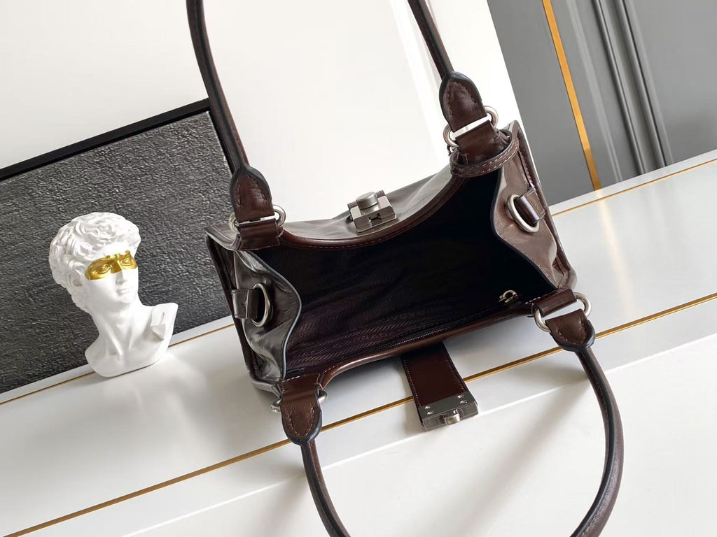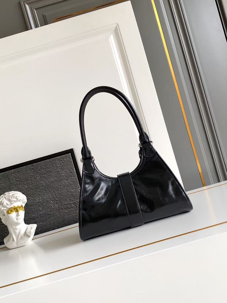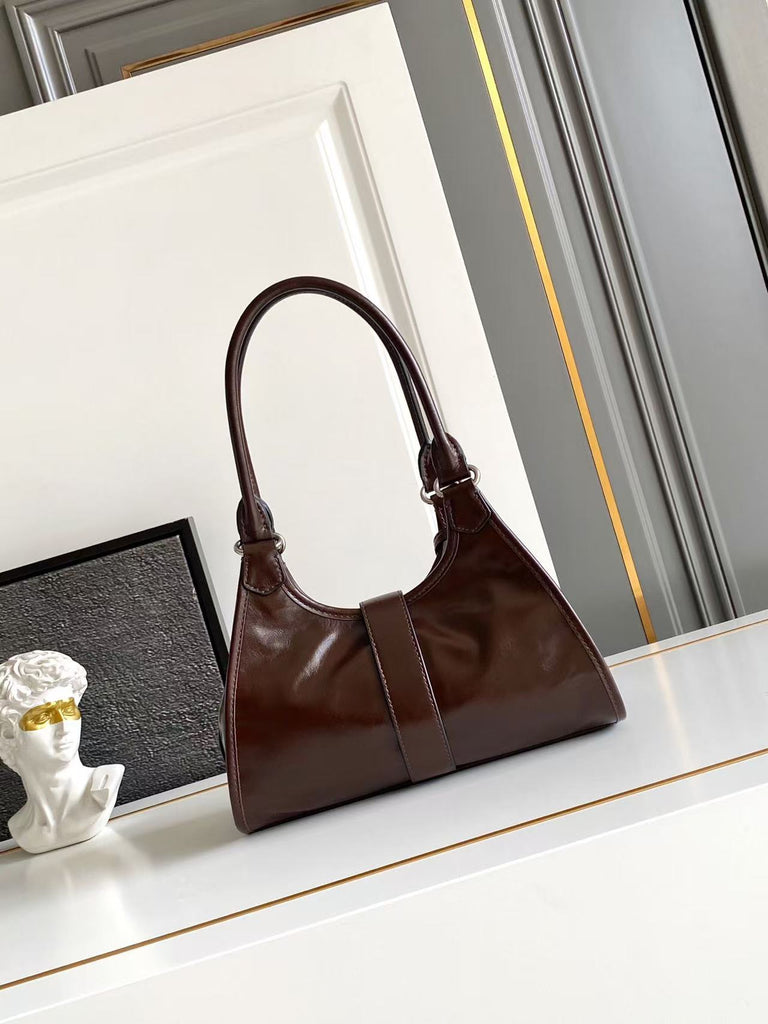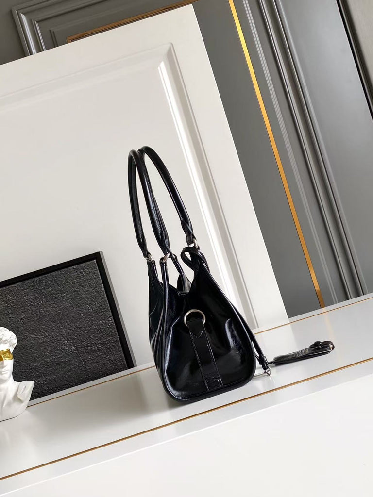 Size: 26x18x12cm, the mini catwalk style is made of imported waxed leather, top-grade hardware: the front panel is equipped with a buckle lock closure, with large capacity, can be carried by hand or on the shoulder, the upper body effect is very atmospheric and fashionable.Geometric lines and refined artisan details define this bag with soft volumes. The trapezoidal silhouette features elongated handles for easy wear, also as a shoulder bag. The vertical clasp, inspired by archive designs, and the leather mirror case complete the accessory with a sophisticated note.